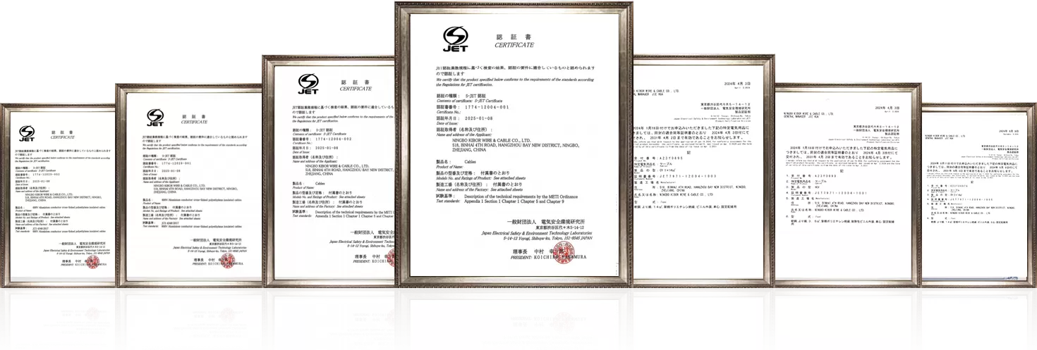 はい、当社は日本市場における「品質保証の完全性」を最優先としており、以下の厳格な認証体系を構築しております: ●PSE認証:関連製品は全て、日本の「電気用品安全法」で規定される義務的なPSE認証を取得しており、安全性と規格適合を保証することができます。 ●S-JET認証:特定電気用品以外のケーブルも認証向上を目的として、日本電気安全環境研究所(JET)が発行するS-JET認証も取得しており、性能と品質が日本の規範に合致することを保証します。 ●その他の国際規格:同時に、TÜV、IEC、UL、CEなどの関連国際規格にも適合しています。 ●難燃性と環境対応:特に、日本の建築基準法要件を満たす高難燃等級(耐熱性、難燃性など)および無ハロゲン低煙(LSZH)の環境配慮型ケーブル製品を提供しています。
